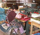 経験豊かな14名の製造スタッフで、皆様のスリッパをお作りしています。 |